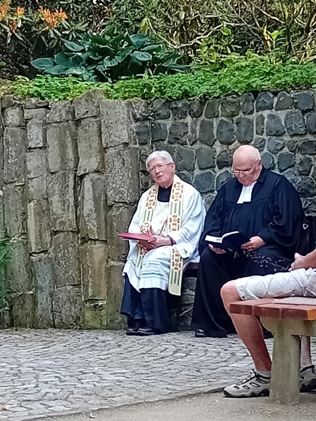 Pfarrer Franz Hilfenhaus, kath.Burghaun und Pfarrer i.R. Helmut Brahn, evang., Hünhan, gestalteten gemeinsam die Andacht.