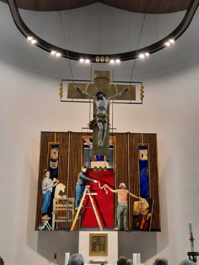 Fotos: Geistliches Zentrum Kohlhagen, Gottesdienst mit Pater Siegfried Modenbach, Altarbild in Drolshagen.